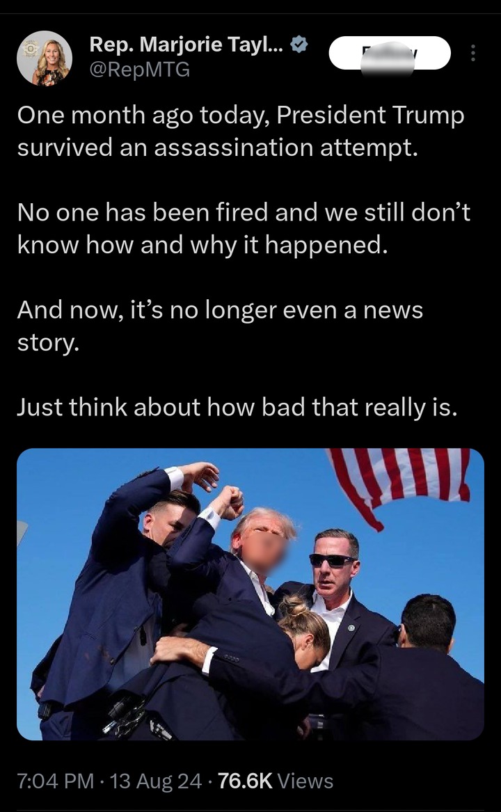 In her tweet dated August 13, 2024, the Republican congresswoman from Georgia highlighted that no one has been dismissed in connection with the attack, and crucial details about how and why it happened remain unclear. Greene’s comments underscore her frustration that the assassination attempt, which was once a major news story, is now seemingly relegated to the background.